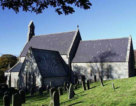 St. Michael and All Angels Church, Alwinton was originally a Norman church. Numerous substantial alterations have been effected over the intervening 900 years, the last restoration being made in 1851. A curious feature of the plan of this church is the great height of the chancel floor above the nave due to the steep slope on which the church is built and also because the chancel surmounts a Norman crypt, later used as a burial vault.
