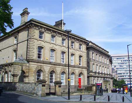 This building is Listed Grade II and like its neighbours the County Courts were built in the gardens of St. John's Vicarage, and standing as they do within their railed enclosure they still retain their original relationship with Westgate Road. Their status is signalled by the Royal Arms over the archway to the left. They are in the classical style of the period as was considered suitable for public buildings, but demonstrate an unusual inventiveness in the treatment of the window surrounds on each floor. The surrounds have lost their accustomed classical stability in favout of an almost organic feel, especially on the first floor, making the buildings rather novel and unexpected. A court room still survives in the heart of the building but without its original fittings and finishes.