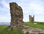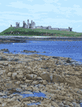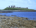 Dunstanburgh seems to hold an invincible site on the basalt crag rearing up more than 100 ft from the sea. It is believed to have been a site for Roman and British strongholds but the existing castle was built in the 14th C by Thomas Earl of Lancaster who was executed for treason 9 years after he started the castle. The castle then went to John of Gaunt who added the surviving gateway. During the Wars of the Roses, the castle changed hands five times, suffering great damage from bombardment and by 1538 it was in ruins. The castle seems to have played no significant part in history but four persons connected with it were canonized or revered as saints: Queen Margaret, Simon de Montfort, Thomas of Lancaster and Henry VI. Dunstanburgh Castle is a National Trust property, under the Guardianship of English Heritage. |