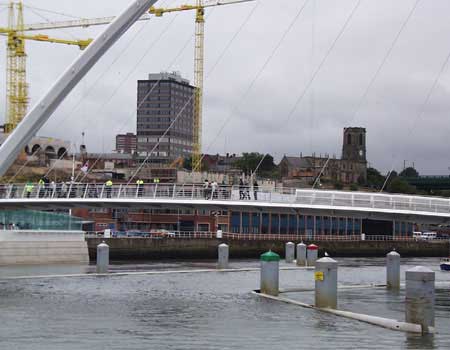 At 1.40pm on the 17th September 2001 the public were allowed to cross the Gateshead Millennium Bridge for the very first time. Only fifty at a time were allowed over from each side so that all of the thousands of people in the crowds that had gathered on either side had a chance to cross.