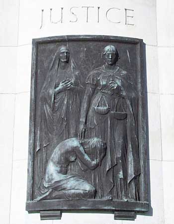 Charles Hartwell's bronze equestrian St. George and dragon occupy a tall Portland stone pedestal decorated by the bronze reliefs of Justice and Peace at each side and by a carved lion at the front. This St. George and dragon is the second cast of a sculpture designed and executed by the artist to commemorate the men of Marylebone killed in the Great War and which is situated close to Lords Cricket Ground. Such a cost saving measure was common at all periods of memorial making where casting techniques were involved. The memorial, which was paid for by public subscription, was unveiled by Earl Haig in 1923. In 1974 the Council's proposal to remove it from Eldon Square to a new site caused a public outcry.
