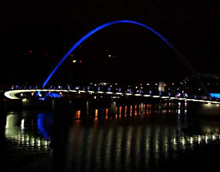 On the evening of September 15th 2001 the night sky was illuminated by the Gateshead Millennium Bridge as the lights were turned on illuminating the curved arch of the bridge. The colours move through the spectrum of the rainbow gradually fading from one to another.