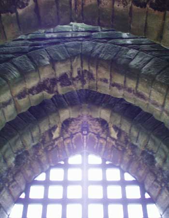 Castle Murder HolesHoles in the roof of a passageway through which rocks or boiling oil could be thrown on the enemies below. |