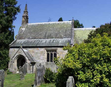 St. Giles's Church, Netherwitton, was consecrated in the 15thC. Netherwitton, meaning the lower woods, was bought by the Dick Wittington-type Mayor of Newcatle, Roger Thornton, in 1405 who built or rebuilt the church and castle. Cromwell's army camped there in August 1651. The Lay Rectorship came to the Trevelyans by marriage in 1772 and their active interest has continued ever since. 1864 saw the rebuilding of the church - a capital and some memorial stones being the chief visiblelinks with the earlier building. A life size effigy, probably of Agnes Thornton, is worth seeing for her fashionble dress and lovely smile.