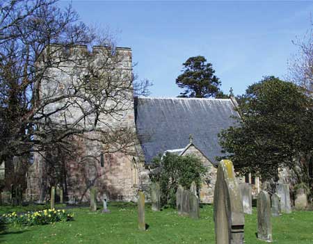 St. Peter and St. Paul's Church, Longhoughton, consecrated in the Saxon era. The remaining features of the original church are the Saxon chancel arch and the piers of the tower arch. The church was rebuilt in 1080 with a strong defensive tower (used for defence until the 17thC). The church was enlarged in the 12thC with the south aisle, restored in 1874. Previous vicars included George Duncan (1696 - 1730) who added revealing comments about his parishoners in the pages of the registers. During the 17thC and 18thC the church and vicarage were reputed to act as the distribution centre for smugglers from Boulmer. The church now serves as station church for RAF Boulmer.