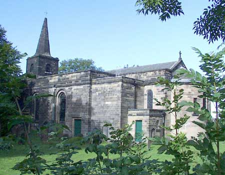 St. Nicholas's Church, consecrated in 1799. The parish is believed to date from Saxon times. The tower and west end of the present church was erected in 1799, the architectwas John Dodds. The enlagement in 1820 on the same Georgian classical lines was the work of John Dobson. Further enlargements were made in 1912/13 and in 1959. Throughout the Middle Ages the area served by the church was North and South Gosforth, Fawdon, Kenton and Coxlodge. In 1805 the register shows the marriage of Edward Barrett to Mary Graham Clarke - their daughter Elizabeth married the poet Robert Browning.
