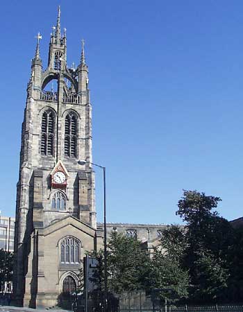 St. Nicholas's Cathedral, Newcastle, is for the most part the 14thC building surmounted by its famous 15thC lantern spire. Much of the interior furnishing dates back to the time of the creation of the new Diocese in 1882. There is one mediaeval window, a rare pre-reformation lectern and a 15thC font, two good Renaissance memorials, many interesting wall tablets and some good modern glass. The church replaced earlier buildings the earliest being Norman.