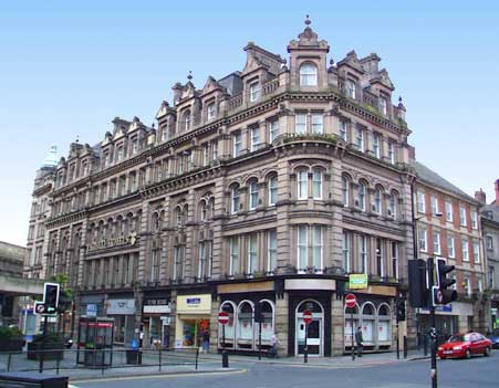 The Thistle Hotel, previously known as the County Hotel, was built in 1874 by architect John Johnstone and is Listed Grade II. The hotel stretched down to Neville Street from Westgate Road and returned along Grainger Street to an entrance facing the impressive portico of Newcastle Central Station. When in 1897 the owners wished to extend the hotel further along Neville Street, they demolished all of Johnstone's Neville Street frontage and two bays on Grainger Street and built the 135 foot frontage, with grand first floor reception rooms. The architect for this new frontage was Matthew Horner Graham.