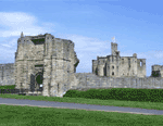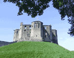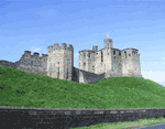 Warkworth, near the mouth of the Coquet, has a sandy beach only one mile away and fishing and boating on the river. You can travel by boat or walk along a shady path to the Hermitage, an unusual refuge dug into the bluff by some hermit in the 14thC. The Hermitage consists of a chapel and two living chambers on two levels, connected by steps. Hermits lived there until the 16th C. The castle is the most splendid ruin of its type in Northumberland. It has not been extensively restored as were the castles of Bamburgh and Alnwick. The first fortification on the site was probably in 1139, with a curtain wall added in the early 13thC. The castle came into the hands of the Percys in the 14thC and remained theirs for some 600 years. |
